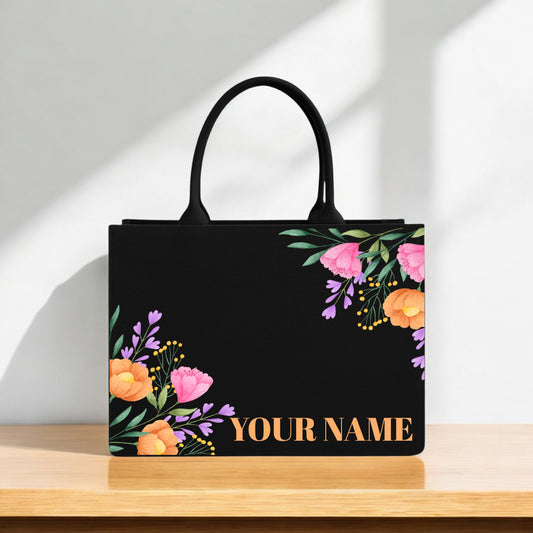 Premium Designer Floral Print Handbag Personalized Name Tote Stylish Bag & Daily Use Bag Size: 10 inch (L) x 12 inch (W)