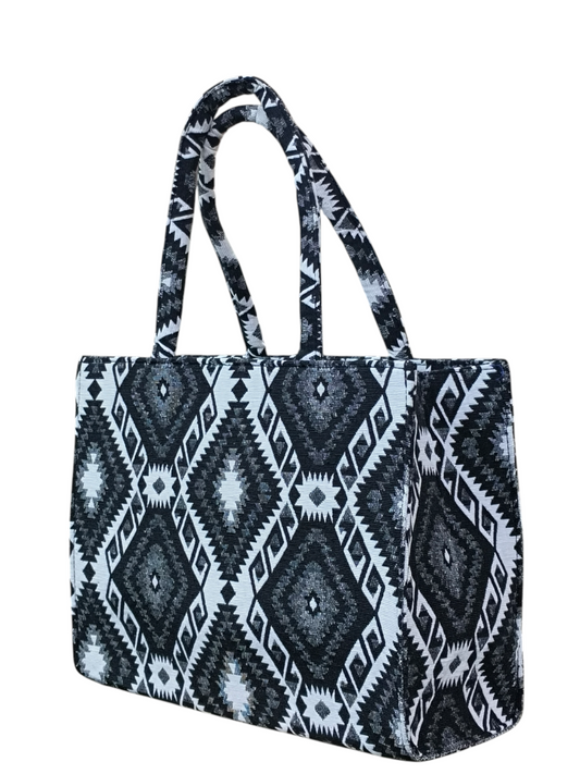 Premium Black & White Jacquard Fabric Tote Bag – Stylish & Durable Handcrafted Shoulder Bag