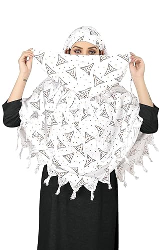 Elegant White Cotton Scarf with Geometric Triangle Print – Soft & Trendy