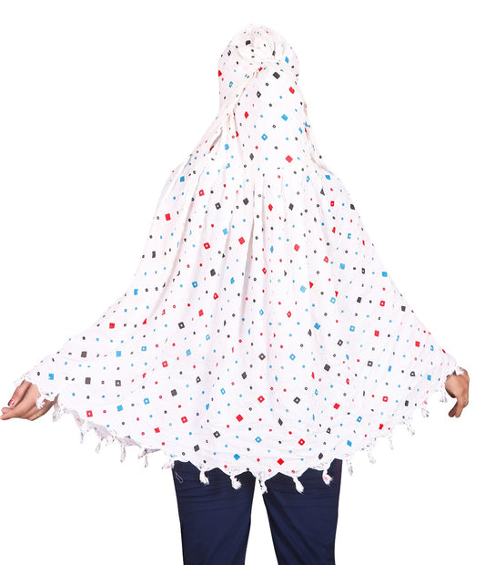 Elegant White Cotton Scarf with Multicolor Geometric Print – Lightweight & Stylish