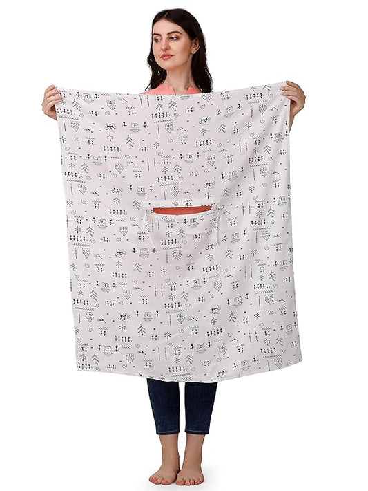 Elegant White Cotton Short Scarf with Artistic Print – Lightweight & Stylish