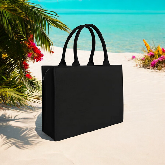 Floral Alphabet Tote Bag | Black Designer Handbag with Vibrant Botanical Print and Bag Size 10” x 12” Fashion Statement Beach & Daily Bag for Women