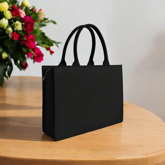 Printed Tote Bag | Custom Name Black Canvas Handbag | 12x16 inch Large Shopping, Office & Casual Carryall