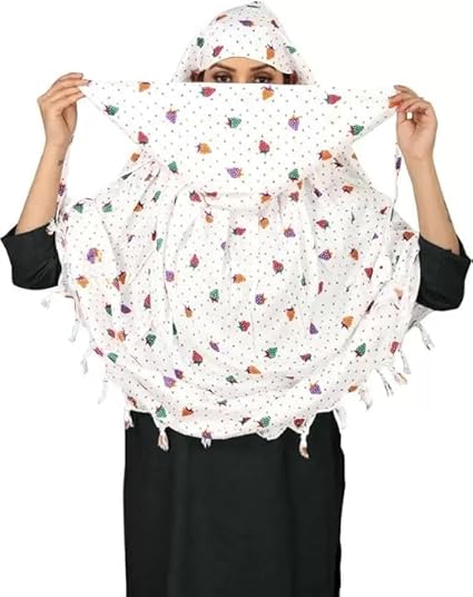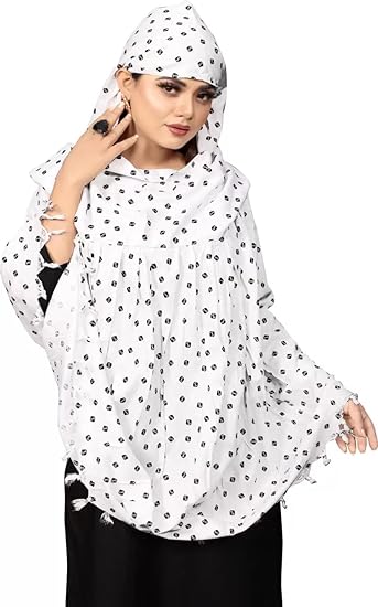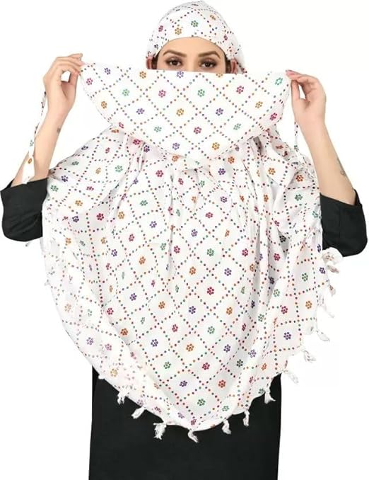 Elegant white scarf with an "all-over pattern" of small black dots, giving it a chic and timeless polka-dot appeal. Crafted from a lightweight, breathable fabric, this scarf drapes beautifully and offers a comfortable fit for everyday wear or special occasions.