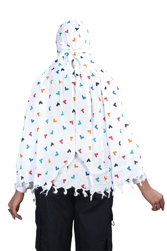 White Cotton Scarf with Colorful Heart Print – Soft, Lightweight & Trendy