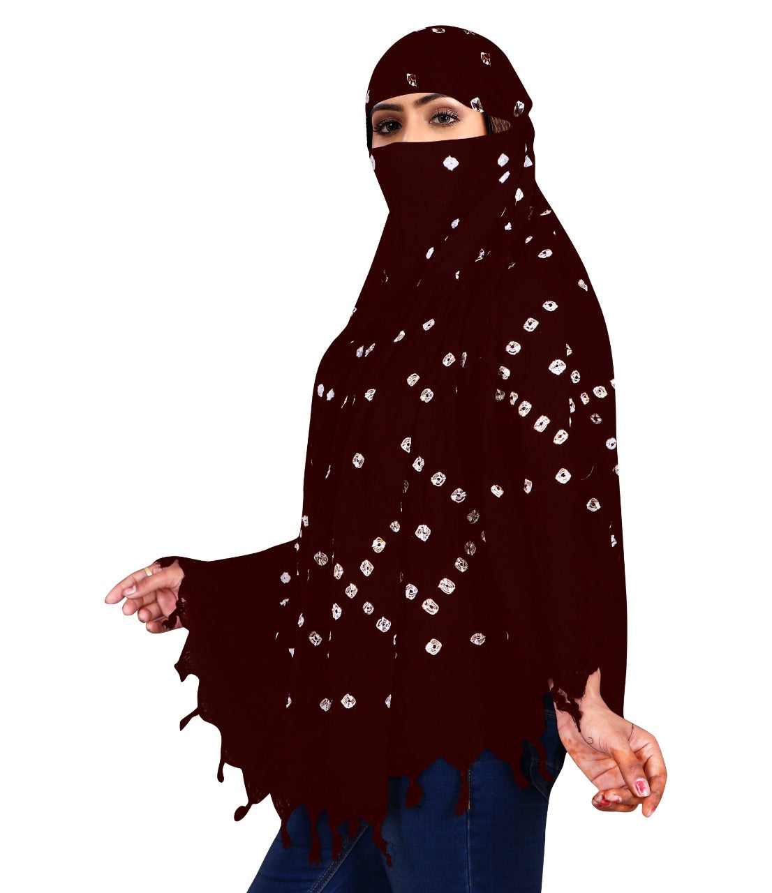 Hand Bandhej Scarf (Maroon)