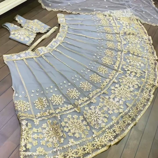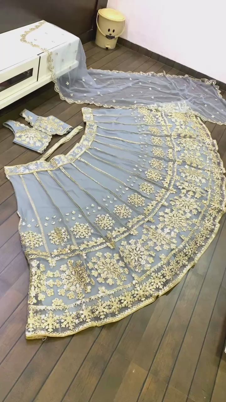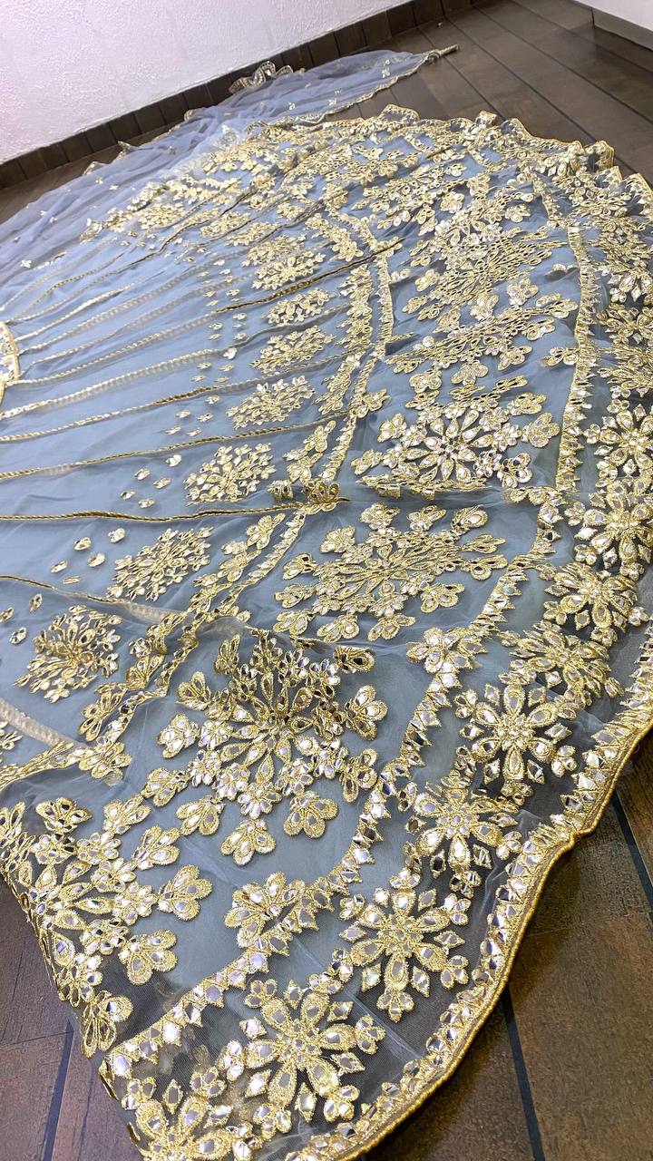 Fabric : Net lehnga with foil paper & zari work