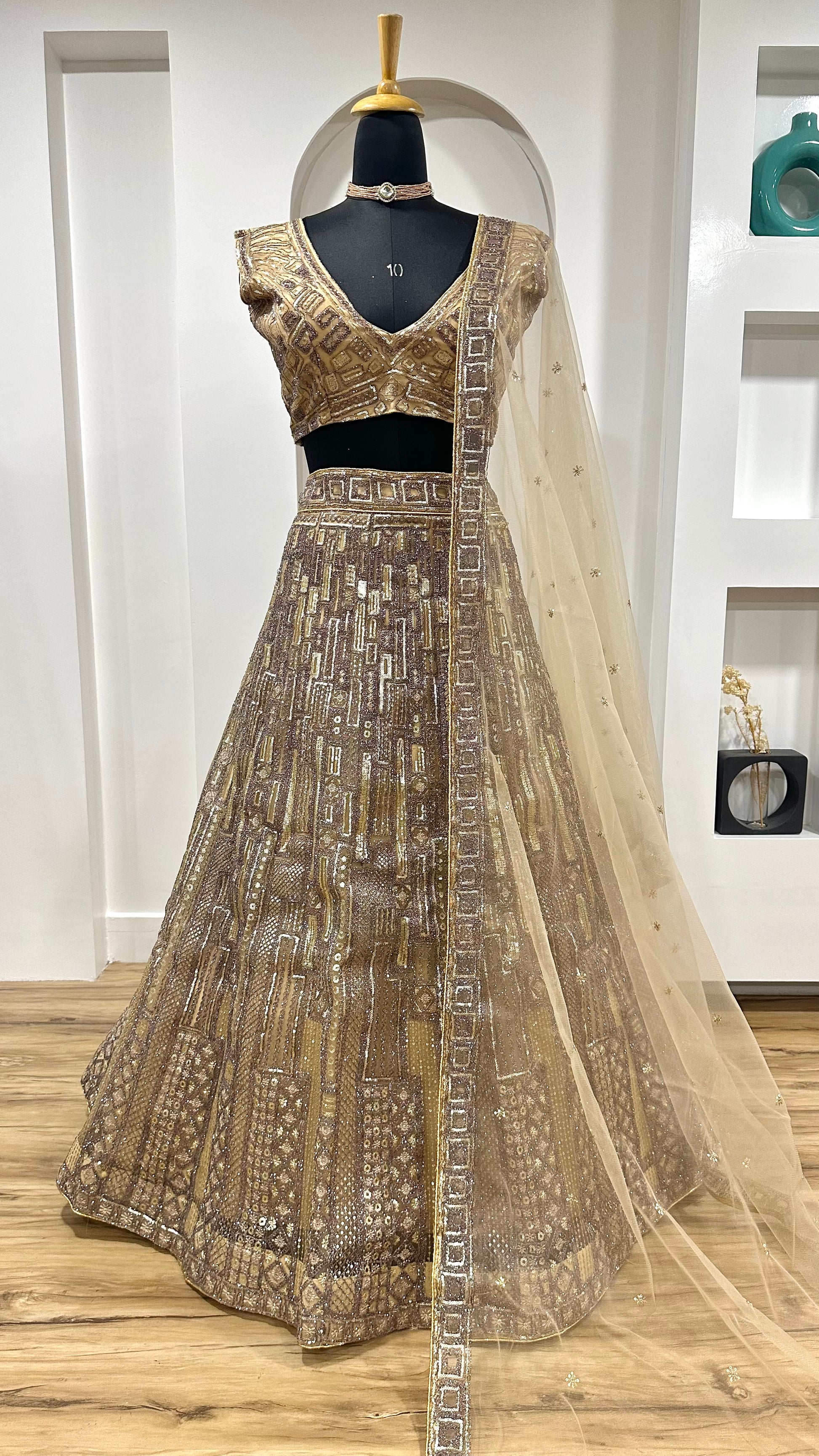 Fabric : Net lehenga with sequins , dori & thread work