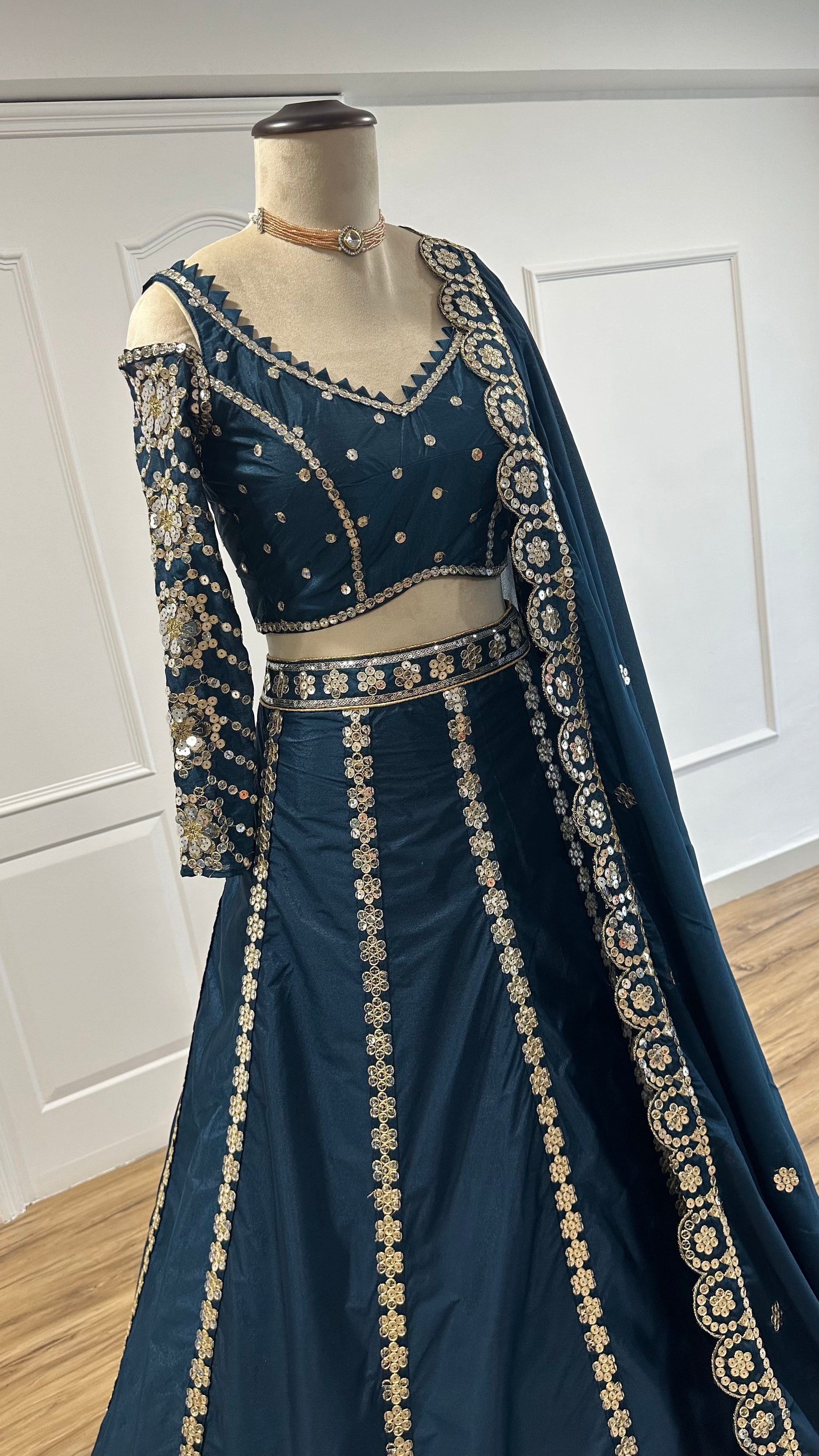 ⏭️ Malai silk lehenga with 9mm sequins work & zari work